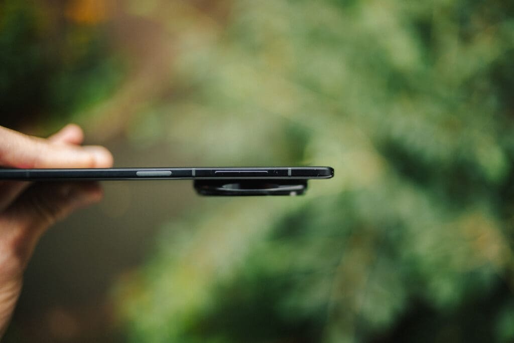Z Fold7 vipper fælt når den ligger med kamerahumpen ned. Den har svært utstikkende kameraer plassert på den ene siden som gjør den så vuggete at jeg ofte legger den fra meg med skjermen ned. HONOR Magic V5 derimot, har en stor rund sentrert kameramodul som gjør at den ligger stabilt på bordet, men i heftig oppoverbakke. Det er nærmest komisk hvor mye den heller.