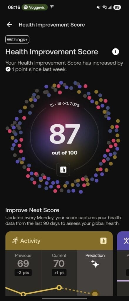 Withings app er også blitt svært bra med årene. Har du flere dingser jobber de sammen for å gi deg en fullstendig helseoversikt. Et abonnement på WIthings+ kan være verdt å teste, da det gir tilgang på treningsprogrammer, kunstig intelligens helse-coach og flere målinger.