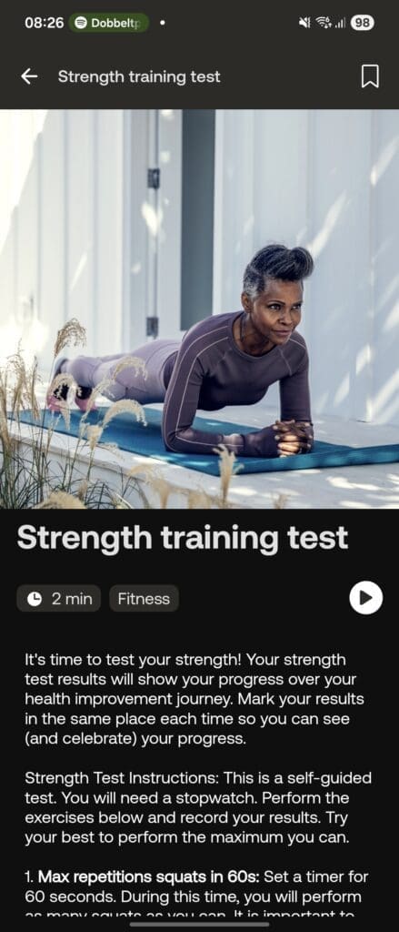 Med Withings+ får man også tilgang på en haug med trening- og matprogrammer man kan følge. Et seksukers program for sterkere muskler inkluderer en matvareliste for hver uke. Ganske omfattende, jeg lurer på hvor mange som følger slike programmer. Hvor mange pushups klarer jeg på ett minutt? Vi får se.